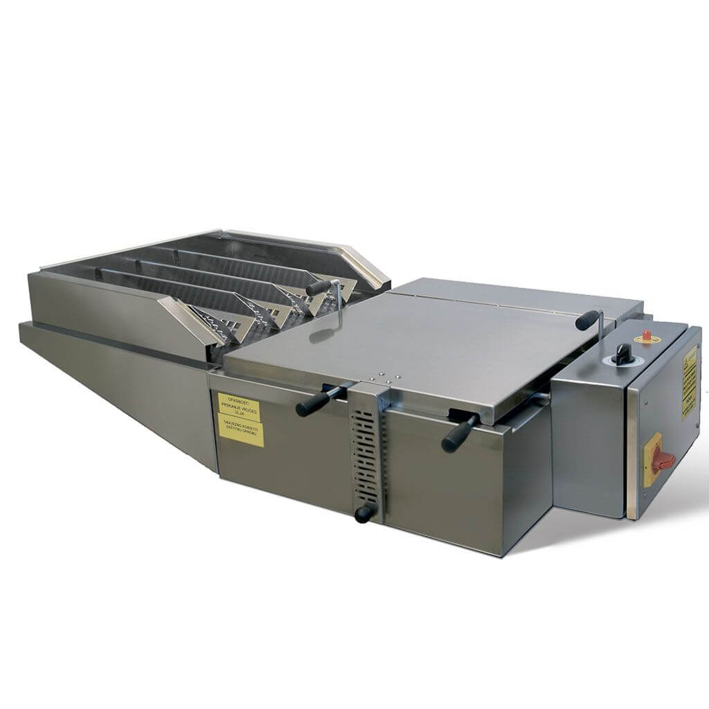 Manual machines are used for baking donuts. They are made of stainless steel. Version with and without chamber for fermentation. Performance without fermentation chamber we called tabletop fryers. Tub oil volume 26 or 36 liters. Frying capacity 16 or 24 pcs per time, hourly frying capacity 160 or 240 pcs/h. Analogic control panel.
