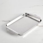 Hestan Provisions OvenBond bakeware combines exceptional craftsmanship and long-lasting performance. Made of triple-bonded, 18/10 stainless steel, this bakeware also features an aluminum core for superior and even heat conductivity. Sleekly beautiful with a brushed stainless steel baking surface and polished exterior, you’ll find their design perfect for oven to table presentation. The tri-ply stainless steel pans have been thermal tested and engineered to be warp-resistant, so as to maintain their shape for a lifetime of baking and roasting. Wide, curved handles are designed to give you a firm hold when removing the pans from the oven. This is the best ovenware that money can buy.