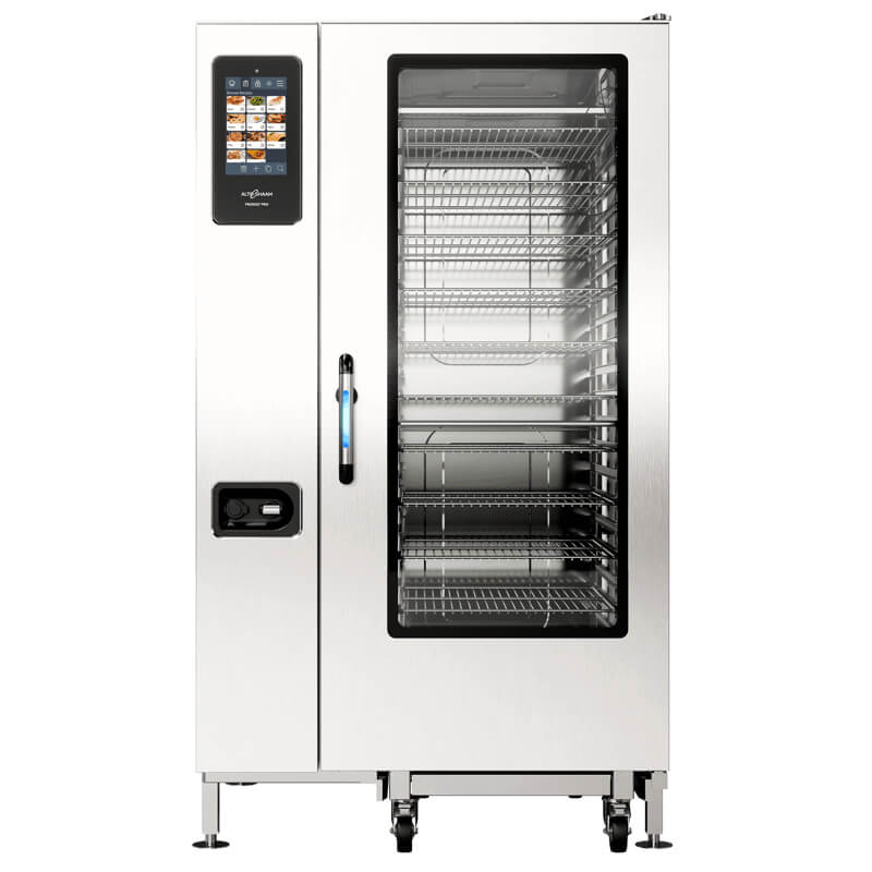 - Built for banquets. A key part of our fully integrated banqueting system, the 20-20 Pro commercial combi oven equipped with a roll‑in cart that allows you to cook food and then roll it into the compatible Alto‑Shaam CombiMate® Mobile Warmer or QuickChiller™ blast chiller. Then, when it is time for service, plate up the meals and retherm them in this large combi oven for quick, consistent results without the worry of them overcooking or drying out.