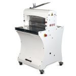 High quality automatic bread slicer which do the slicing cylce after pushing the start button. The machine can also be equpped with a sensor which start the slicing after the operator place the bread on the back table. There is also possible the order the machine with the regulation of the bread pushing speed.
