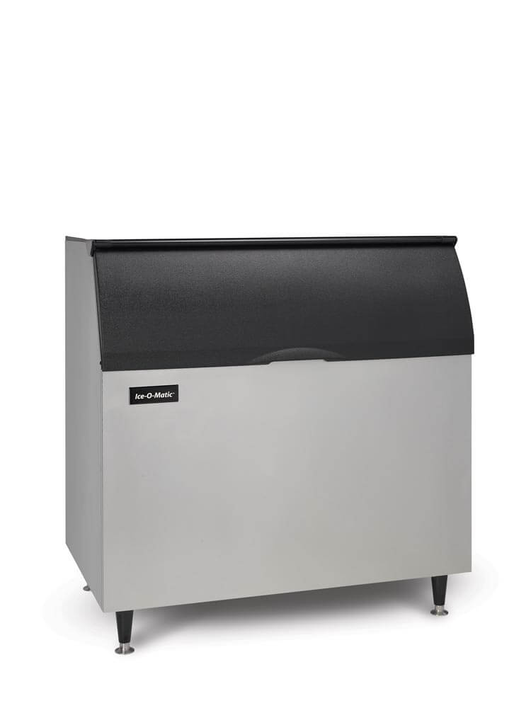 Ice Bin, 854 lb storage capacity, 48″W x 31″D x 50″H, top-hinged, slope front door, for top-mounted ice maker, polyethylene interior, durable aluminum exterior, 6″ legs, NSF