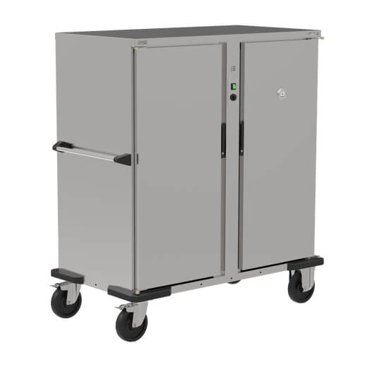Used withPlatform Dispensers (for Baskets, Trays & Meal Trays)Pipe Dispenser (Round Crockerey)Serving TrolleysZUB – Delivery TrolleysOur food flowLet us inspire you.AccessoriesOverviewThe double, analogue circulating air-heated GN 2/1 banquet trolley made of stainless steel, seamlessly deep-drawn support rails (70 mm) for GN grilles/containers, doors with double-walled insulation, with a pushing handle on the face side – with 4 corner bumpers, stainless steel castors, 2 fixed castors and 2 swivel castors with brakes.