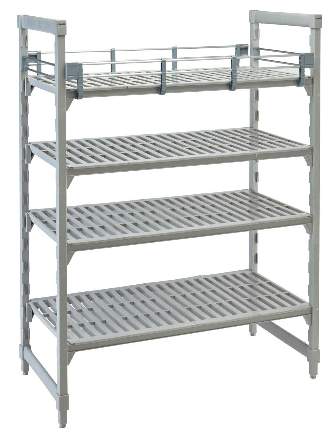 • Quickly and easily create the perfect storage configurations for dry storage and coolers, with the versatility of Basics Plus Series Camshelving. With a lifetime guarantee against rust and corrosion, Basics Plus is designed from highly durable composite plastic, holding up to 1,800 lbs (816,5 kg) per unit. Ideal for food service, removable shelf plates have molded-in antimicrobial Camguard® and can be safely run through commercial dishwashers. Removable traverses allow operators to adjust heights as needed, creating a custom shelving solution without the costs of difficult assembly and replacement. Units are capable of sharing a single post in a straight line without losing weight capacity. Optional corner connectors allow units to share a single post in an L-shape, U-shape, or T-shape with minimal loss in capacity. Enjoy the economical Camshelving solution for food service operators, and save with years of reliable service.