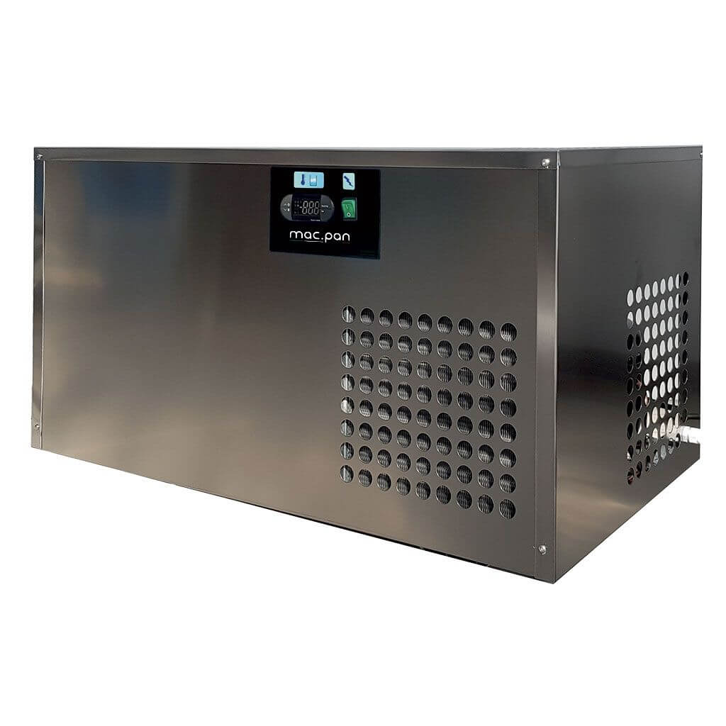 The constant flow water chillers series CWC they serve to cool the water destined to the creation of mixtures for food products such as bread, pasta, etc. They represent the most high guarantee of hygiene cooling because the water that will be used for food production does not come into contact and never stops inside the cooling tank cause passes inside the tubular stainless exchanger which in turn and ‘immersed in a bath full of water cooled by a coil, said evaporator, also made of stainless steel, inside which passes the Freon gas. In this way there is a guarantee that even in the event of breakage of the evaporator tube does not pollute the water to be used for the production, also there will be no problems of deposit on the bottom of the tank or stagnation due to periods of inactivity of the machine.
