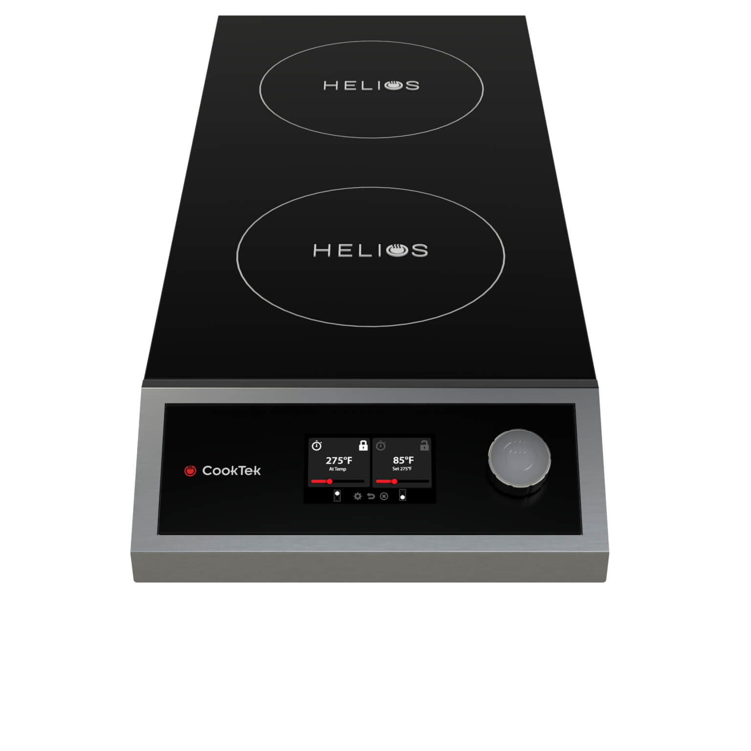 • CookTek’s induction double hob cooktops with HELIOS controls offer an efficient, powerful, and user-friendly solution for both commercial and home kitchens, making them a popular choice for chefs and food enthusiasts alike.