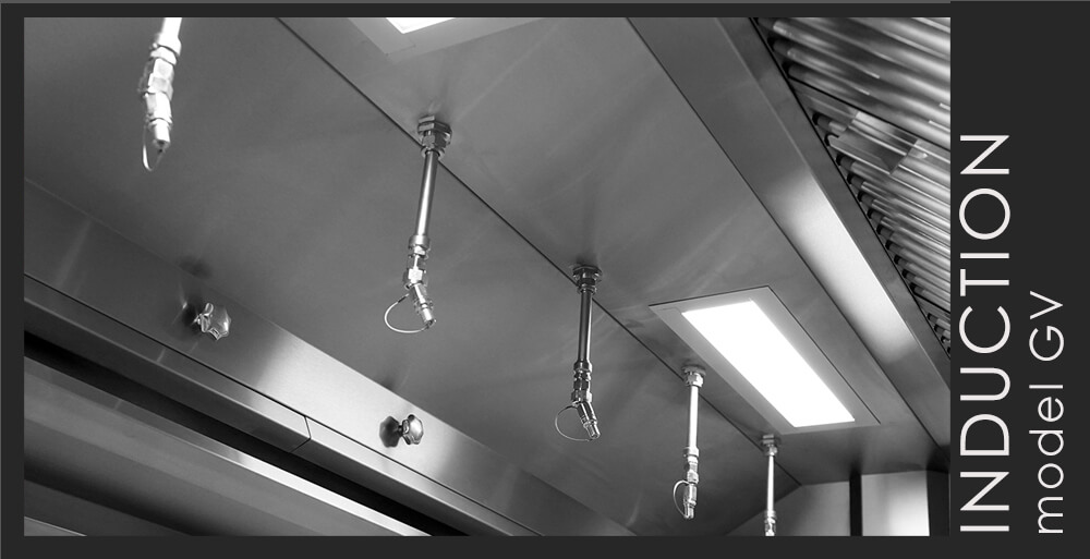 The utilization of this high velocity air stream greatly increases the exhaust efficiency. The Fecon filters are inserted in the canopy at an angle of 45°. The air passes through the semi-circular channels of the Fecon filters and is forced into two directions separating the heavier grease particles from the air stream by centrifugal force. The grease runs off into the grease collecting gutter and is collected in a removable tray. This compensation of approximately 60% exhaust air is a proven energy saver as only 40% tempered air is wasted.