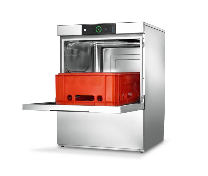 Ready to install – completely equipped: fill / drain hose, power cord (400 V connection), detergent dispenser, rinse aid dispenser, rinse pump, drain pump, back-flow preventer