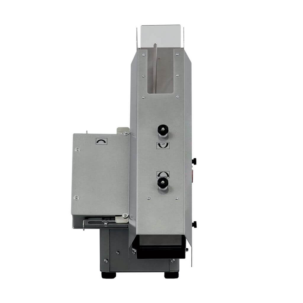 OP is an horizontal slicer. It allows the full or partial slicing of loaves (sandwiches, buns). The cutting height and also the cutting depth are adjustable.