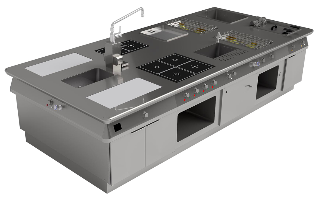 • EXECUTION: modular or one-piece top, single line or back to back, Front of the House & Back of the House. Mounted on feet or plinth